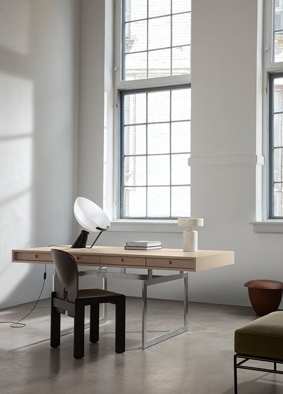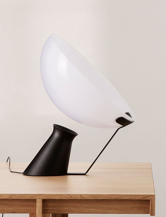 Reconocido por su enfoque investigado y controlado de los materiales, el arquitecto, escultor y diseñador italiano Angelo Mangiarotti creó la lámpara Aida que casi desafía la gravedad con su desconexión visual entre la base y la pantalla y una luz ambiental agradable. Haciendo referencia a los principios de su aclamada arquitectura, donde pilares delgados y elegantes sostienen techos grandes y pesados en una elevación casi imposible, Mangiarotti concibió la silueta bellamente equilibrada de Aida.