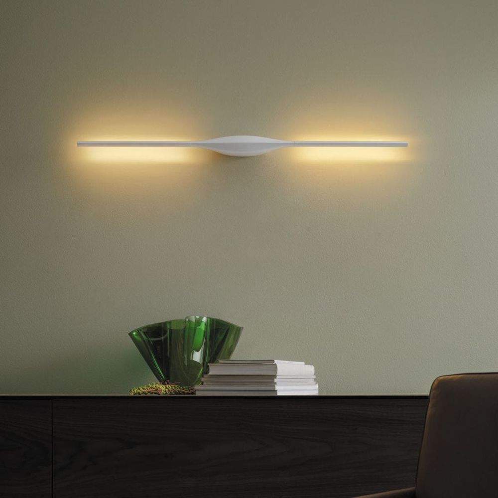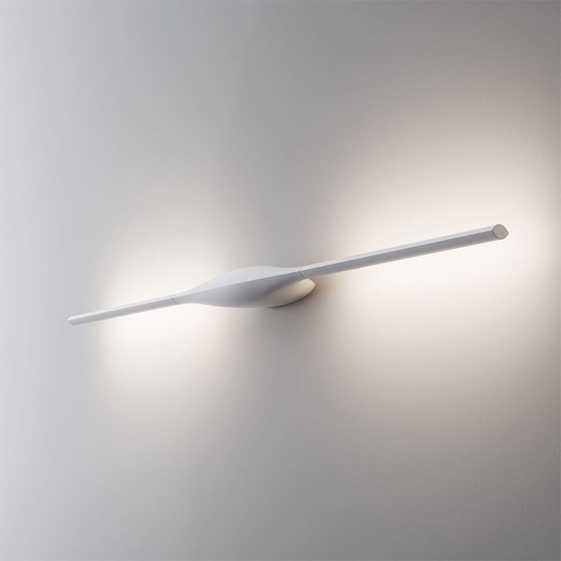 Apex es un aplique que se distingue por su diseño elegante y estilizado y su centro en forma de ojo. Cada extremo de la luminaria se estrecha y casi desaparece en su entorno, mientras que al mismo tiempo emite una potente y funcional hoja de luz. Apex se puede instalar horizontal o verticalmente.