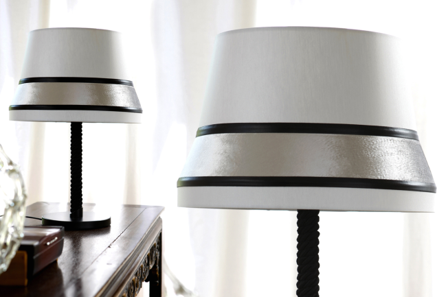 La lámpara de mesa Audrey Ta es un modelo muy simbólico de Contardi, inspirado en el sombrero de Audrey Hepburn en la clásica cinta, obra maestra del cine mundial: ”Desayuno en Tiffany”. Sin duda se trata de una verdadera obra maestra de estilo y clase: con un tallo cubierto de seda trenzada o terminado en color negro satinado, pantalla de terciopelo y algodón, adornada con un tapiz a manera de cintillo con ribetes de seda en dos tonos. Este modelo ha sido ideado para espacios donde la exclusividad y elegancia sea la preocupación principal. Una belleza de corte clásico.