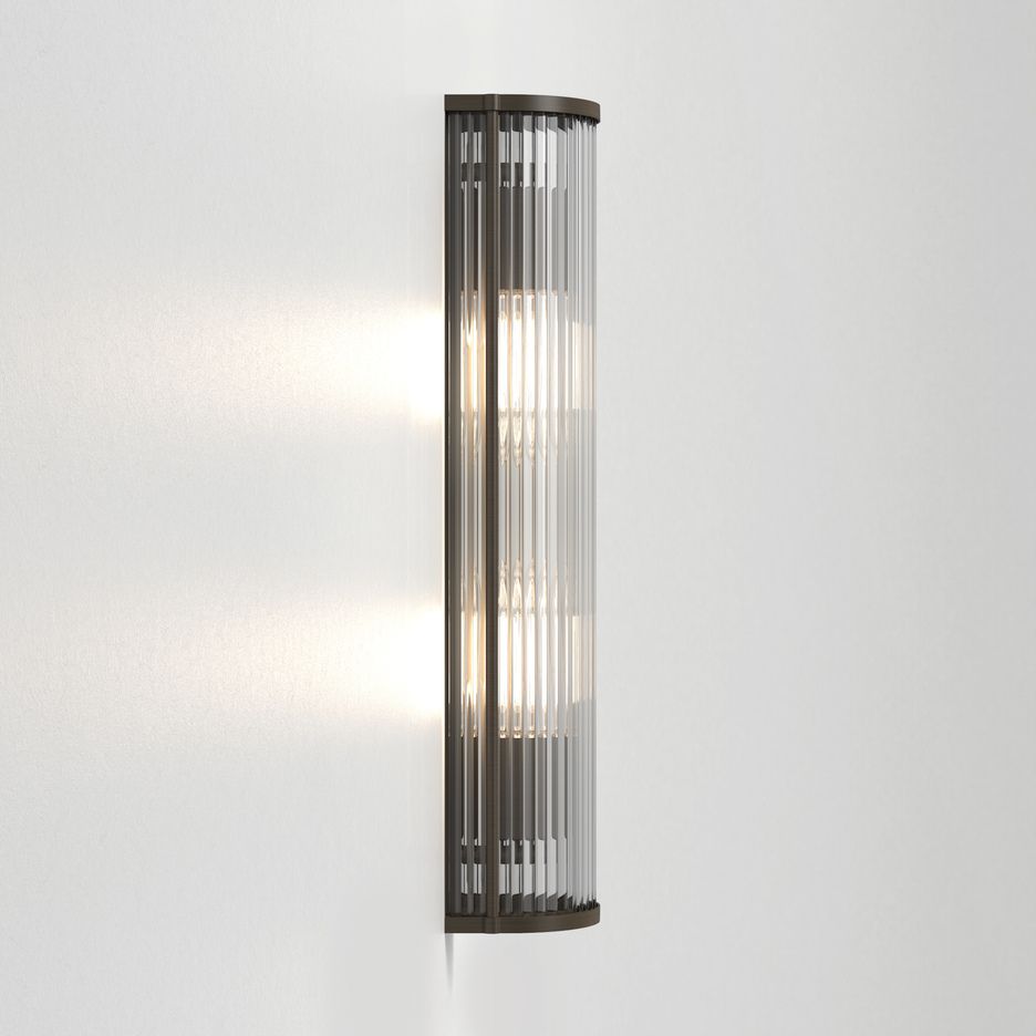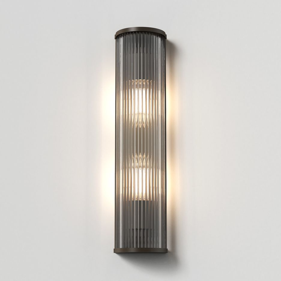 Inspirado en las luminarias art decó, el aplique de pared Avignon Round 525 destaca por su tamaño y se hace notar en cualquier espacio con un efecto impactante evidente. Alta y esbelta con un perfil redondo, dotada de brillantes varillas de vidrio transparente y tapas de fundición de bronce en cada extremo, así consigue esta lámpara una iluminación ambiental sin destellos.