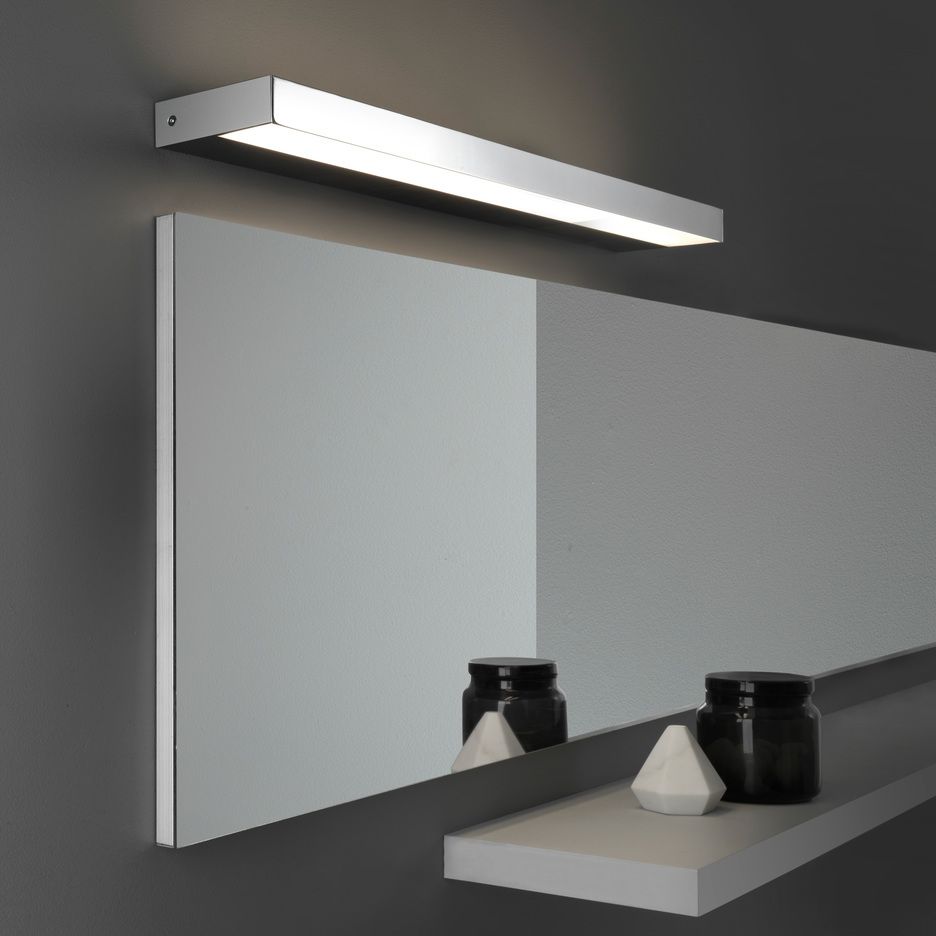 La lámpara de pared Axios 600 LED, de Astro Lighting, es un accesorio brillante y elegante ideal para colocarlo sobre el espejo de su baño. Ya sea en posición horizontal o dos lámparas en forma vertical –una por cada lado–, la luz generada será de un tipo uniforme, sin problemas de sombras innecesarias, generando ambientes elegantes. Todo brillo y glamour, las Axios, en sus diferentes tamaños, combinan forma y función en una solución de iluminación brillante con su cuerpo de cromo pulido, albergan un downlight con un difusor frío haciendo un uso excelente de los LED de potencia media para crear una iluminación sutil e ideal.