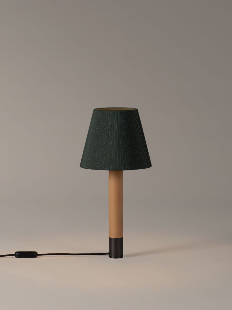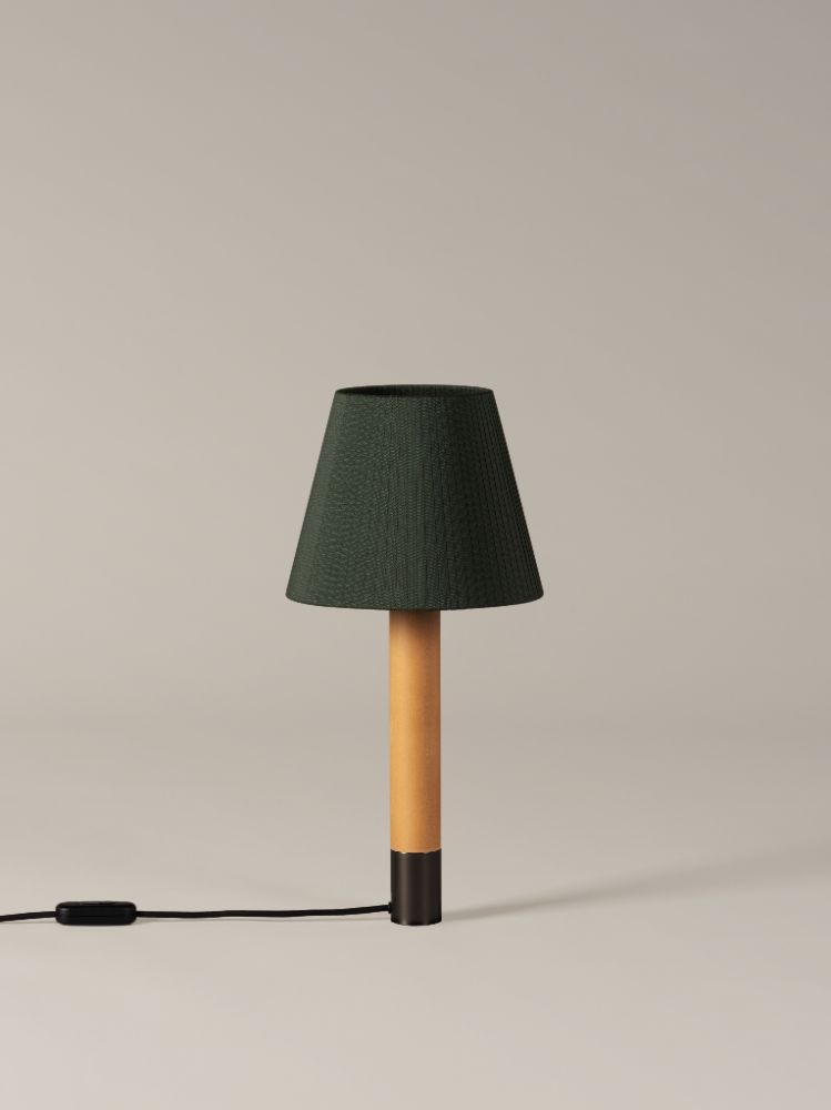 The Basic lamp promotes a return to natural materials. A birch wood cylinder, supported by a heavy metal base of the same diameter, elevates a variety of shades in various shapes and colors, made of stitched cardboard or ribbon. It's a true challenge to the metallic taste of the 1980s.