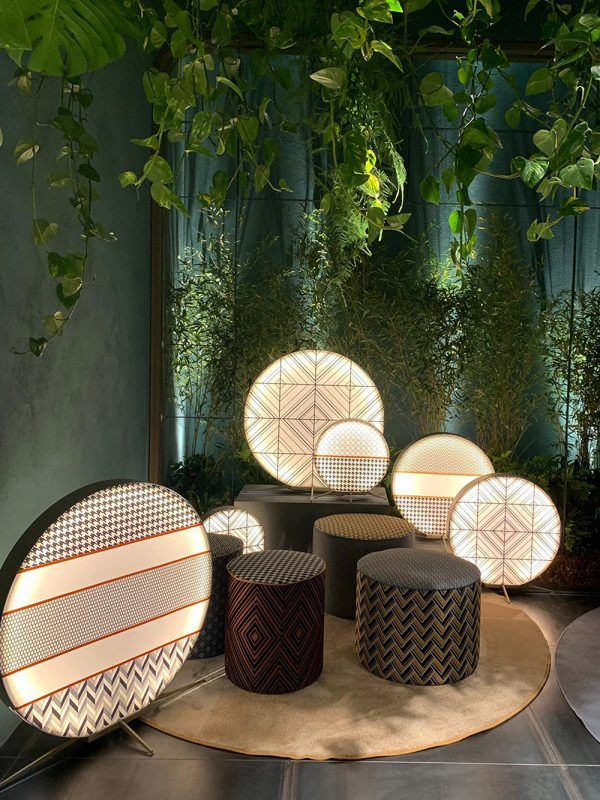 Babu es una colección de exterior IP65 diseñada para sorprender trazando un cartel luminoso en el espacio. Está hecho con tecnología innovadora de impresión digital tridimensional sobre tejidos de exterior, lo que le da profundidad y crea interesantes juegos ópticos.