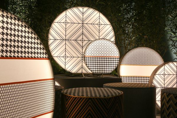 Babu es una colección de exterior IP65 diseñada para sorprender trazando un cartel luminoso en el espacio. Está hecho con tecnología innovadora de impresión digital tridimensional sobre tejidos de exterior, lo que le da profundidad y crea interesantes juegos ópticos.