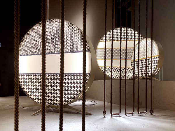 Babu es una colección de exterior IP65 diseñada para sorprender trazando un cartel luminoso en el espacio. Está hecho con tecnología innovadora de impresión digital tridimensional sobre tejidos de exterior, lo que le da profundidad y crea interesantes juegos ópticos.
