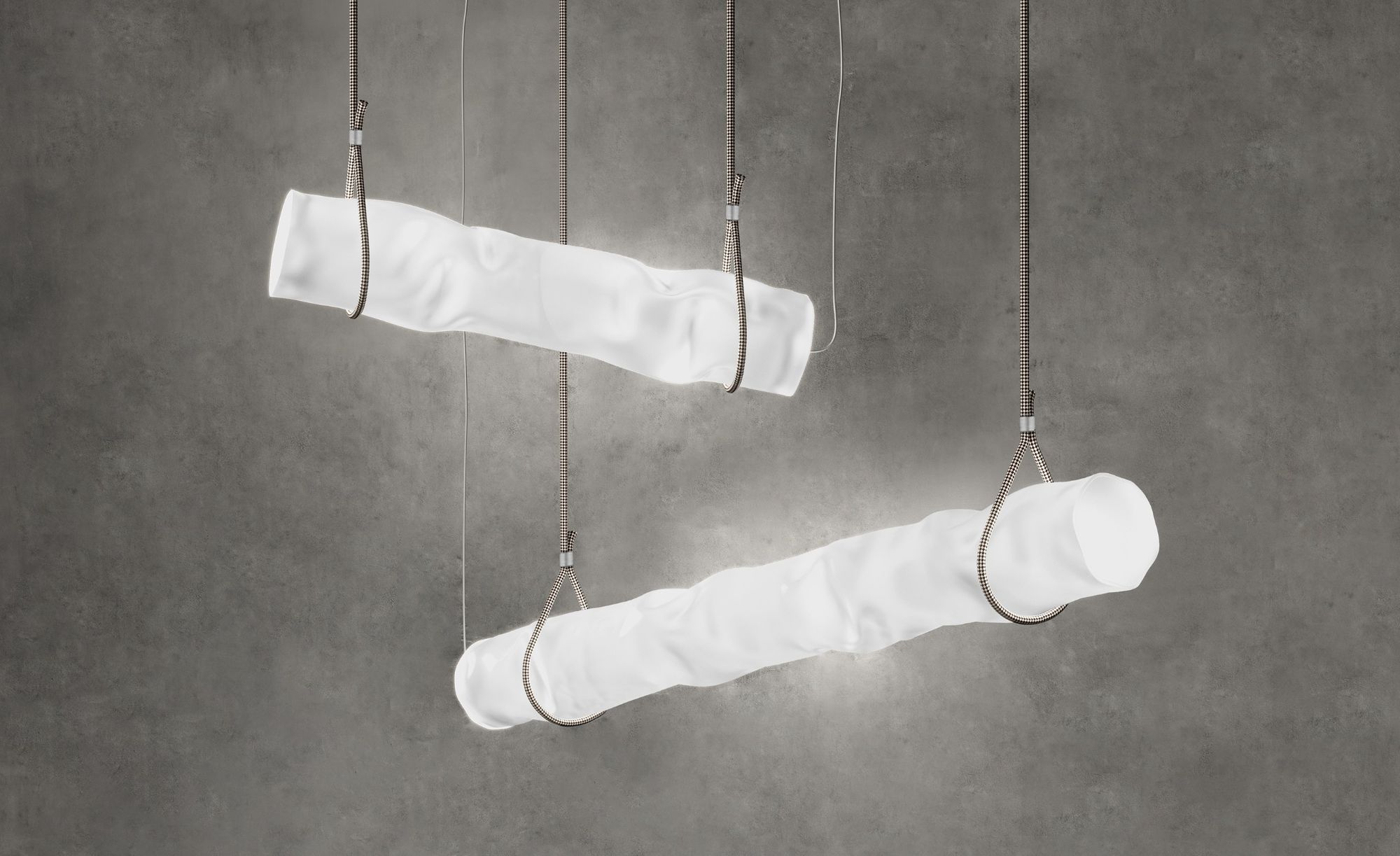 Baggy es una colección ecléctica de lámparas con un carácter informal y lúdico. Están disponibles como módulos individuales de diferentes tamaños, para permitir total libertad de composición. Lo que hace especial a Baggy es su forma orgánica, que contiene un LED personalizado que emite luz de manera mágica e inesperada.