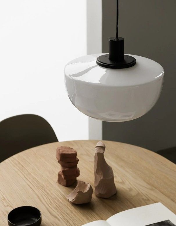 Bank es un colgante semicircular para interiores elaborado con vidrio soplado ópalo o ahumado y accesorios de aluminio con recubrimiento en polvo negro. El vidrio opaco difunde suavemente la luz de 360 ??grados de cualquier bombilla E26, creando ambiente y brindando una iluminación excelente para casi cualquier función. La combinación de vidrio opaco y metal fino confiere al producto calidad, tacto y longevidad duraderos. Un accesorio especial con alambre garantiza que la exclusiva pantalla de cristal se pueda ajustar fácilmente para colgar de manera uniforme.