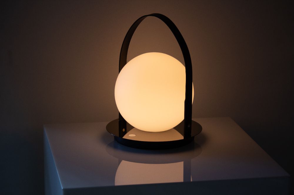 Basado en la Bola Sphere Table, la Bola Lantern agrega un asa de cuero premium y una batería recargable que permite un nivel de portabilidad nuevo para la Familia Bola. El tamaño y la estatura de Bola Lantern dan una sensación de presencia que no se encuentra con los portátiles, al tiempo que mantienen la ligereza asociada con los orbes flotantes que son Bola. Los discos están disponibles en cromo, latón, gunmetal y negro mate. Las asas de cuero están disponibles en un cuero curtido vegetal natural y negro. La duración de la batería oscila entre 10 y 400 horas, dependiendo de la intensidad de la luz. Bola Lantern produce 280 lúmenes de luz ambiental cálida.