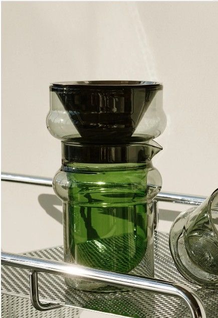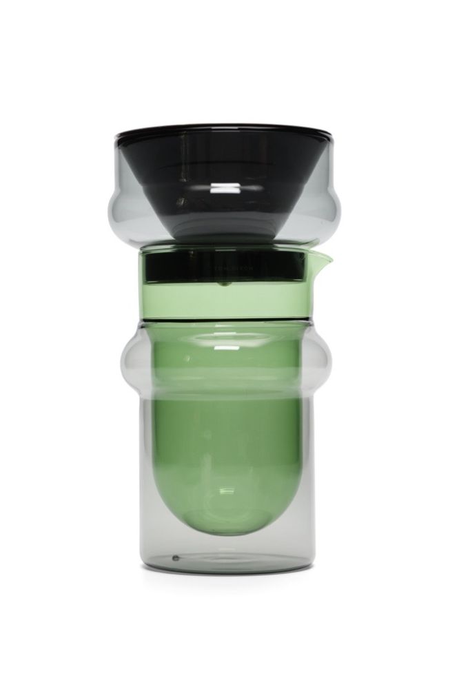 La jarra y el filtro Bump están elaborados con vidrio de borosilicato de alta calidad. Hechos a mano con sutiles tonos verdes y grises, el filtro tiene una capacidad de 400 ml, diseño de doble pared y resistencia natural al choque térmico, lo que lo convierte en un ritual de café refinado.