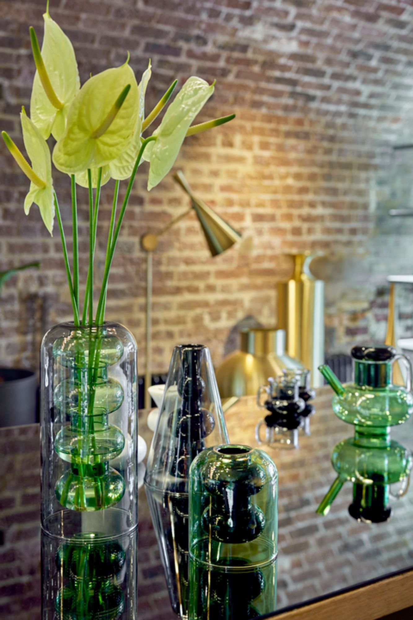 El jarrón corto Bump forma parte de una familia de recipientes minimalistas de borosilicato, hechos a mano con sutiles tonos verdes y grises. Bump ofrece un enfoque elegante al arte alquímico de los arreglos florales, perfecto tanto para el uso diario como para ocasiones especiales.