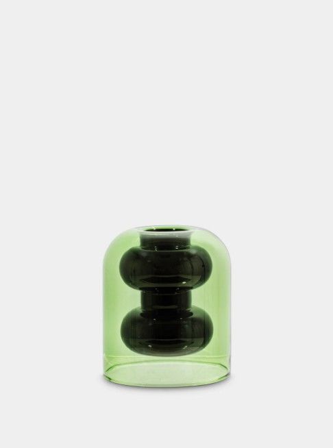 The Bump short vase is part of a family of minimalist borosilicate glass containers, handcrafted in subtle shades of green and gray. Bump offers an elegant approach to the alchemical art of floral arrangements, perfect for both everyday use and special occasions.