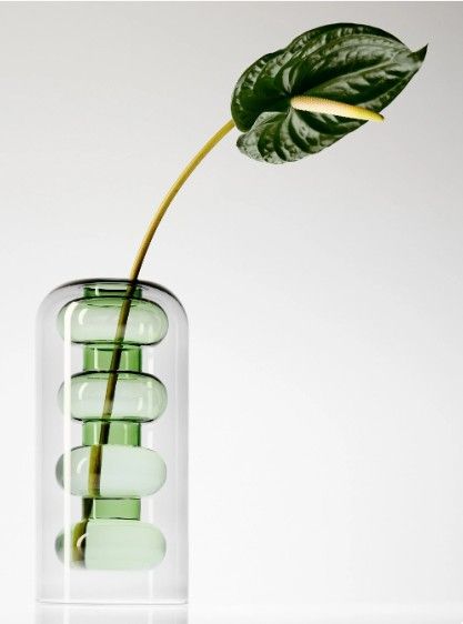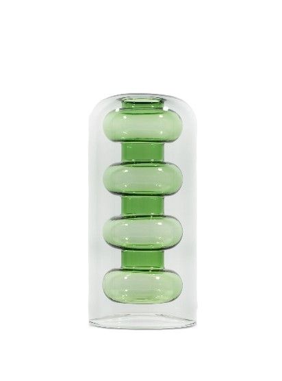 El jarrón alto Bump forma parte de una familia de recipientes minimalistas de borosilicato, hechos a mano con sutiles tonos verdes y grises. Bump ofrece un enfoque elegante al arte alquímico de los arreglos florales, perfecto tanto para el uso diario como para ocasiones especiales.