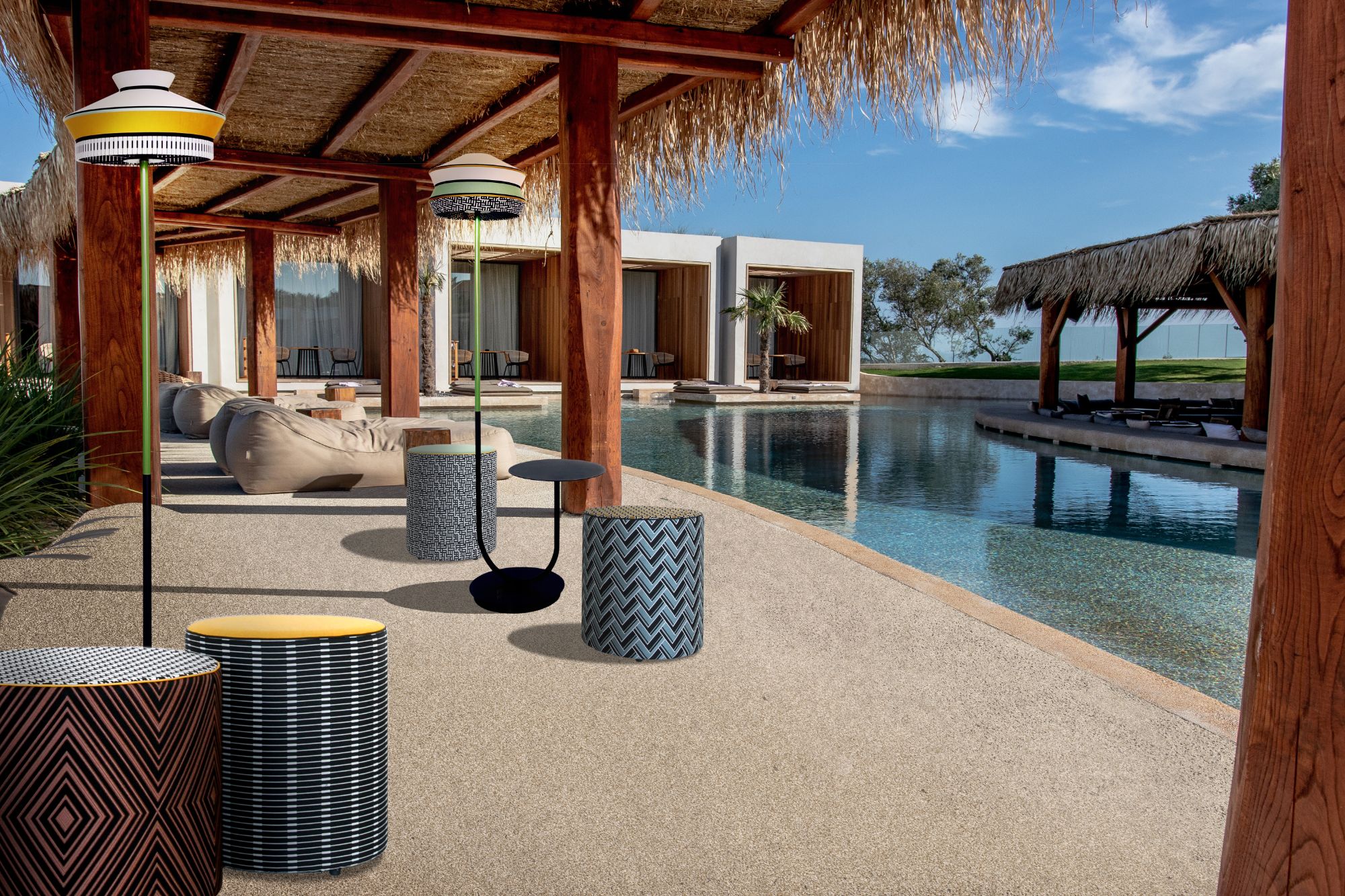 La familia Calypso está creciendo con la versión de pie, de nuevo como una lámpara de exterior IP65. La fuente de luz está alojada dentro de un cilindro de vidrio que está sellado para garantizar el grado de protección IP65. La parte inferior de la estructura es lacada en negro, al igual que la mesa de centro.