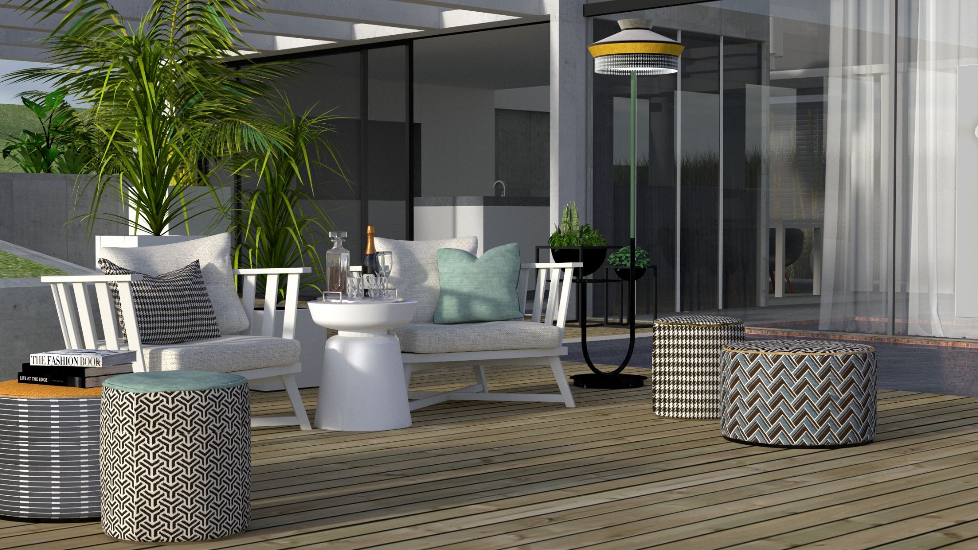 La familia Calypso está creciendo con la versión de pie, de nuevo como una lámpara de exterior IP65. La fuente de luz está alojada dentro de un cilindro de vidrio que está sellado para garantizar el grado de protección IP65. La parte inferior de la estructura es lacada en negro, al igual que la mesa de centro.