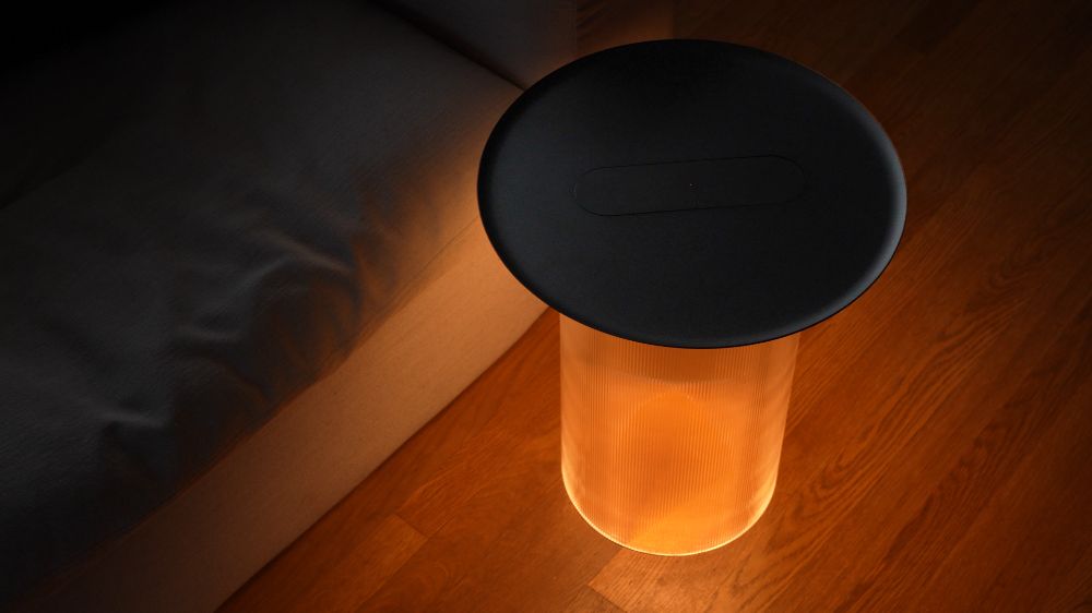 Carousel difumina la lnea entre ambiente y utilidad combinando una superficie de bandeja de carga inalmbrica de baja configuracin para sus dispositivos mviles con una iluminacin clida y sin reflejos. Su mdulo de luz LED de bajo perfil est discretamente oculto debajo de su bandeja de acoplamiento y suspendido sobre un difusor cilndrico acrlico estriado transparente que irradia fascinantes patrones de luz sobre la superficie de la mesa debajo. Perfectamente adaptada para uso en escritorio o junto a la cama, Carousel encarna una perspectiva exclusivamente hbrida de lo que puede ser una luz personal. El difusor de base se ofrece en tinte transparente y bronce y se puede combinar con una bandeja de acero hilado en acabados blanco mate, terracota y negro.