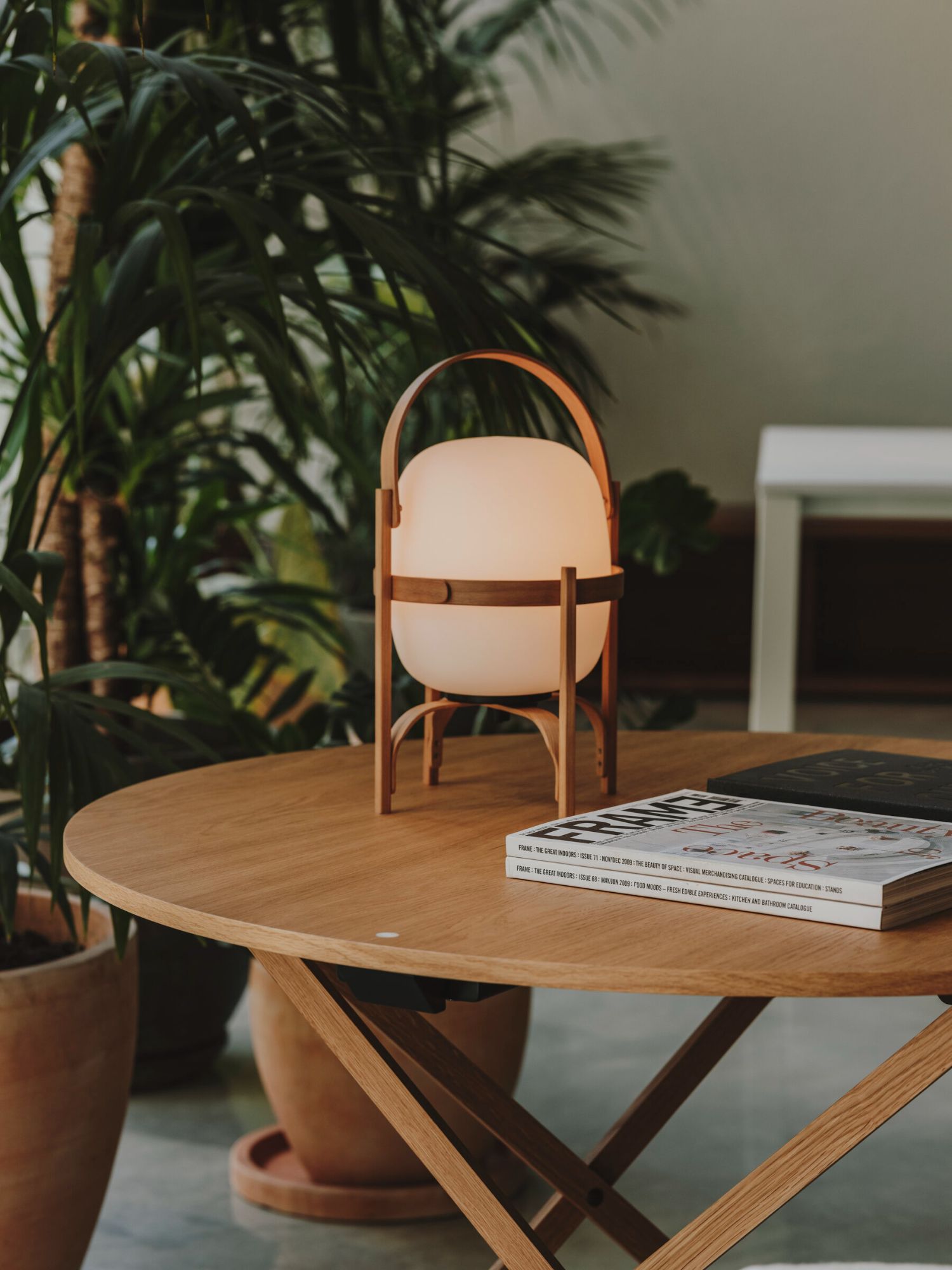 Cestita Batería es el nuevo miembro de la familia Cesta: una versión portátil e inalámbrica. Con esta nueva versión, las características de la lámpara se mejoran con la ayuda de la tecnología. Manteniendo el espíritu cálido de la familia, presenta una pantalla de vidrio opal con el apoyo de una hermosa estructura de madera de cerezo. Es producido manualmente por artesanos europeos, utilizando técnicas tradicionales de doblado al vapor para la madera, y técnicas de soplado de vidrio para su sombra de ópalo. Cestita batería es una linterna que crea un ambiente hermoso en cualquier lugar; representando sombras chinas en el jardín, o emanando luz de cualquier esquina.