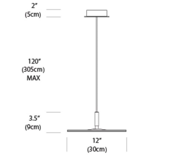Altura max: 319cm; ancho pantalla: 30cm; ancho dosel: 14cm; altura dosel: 5cm