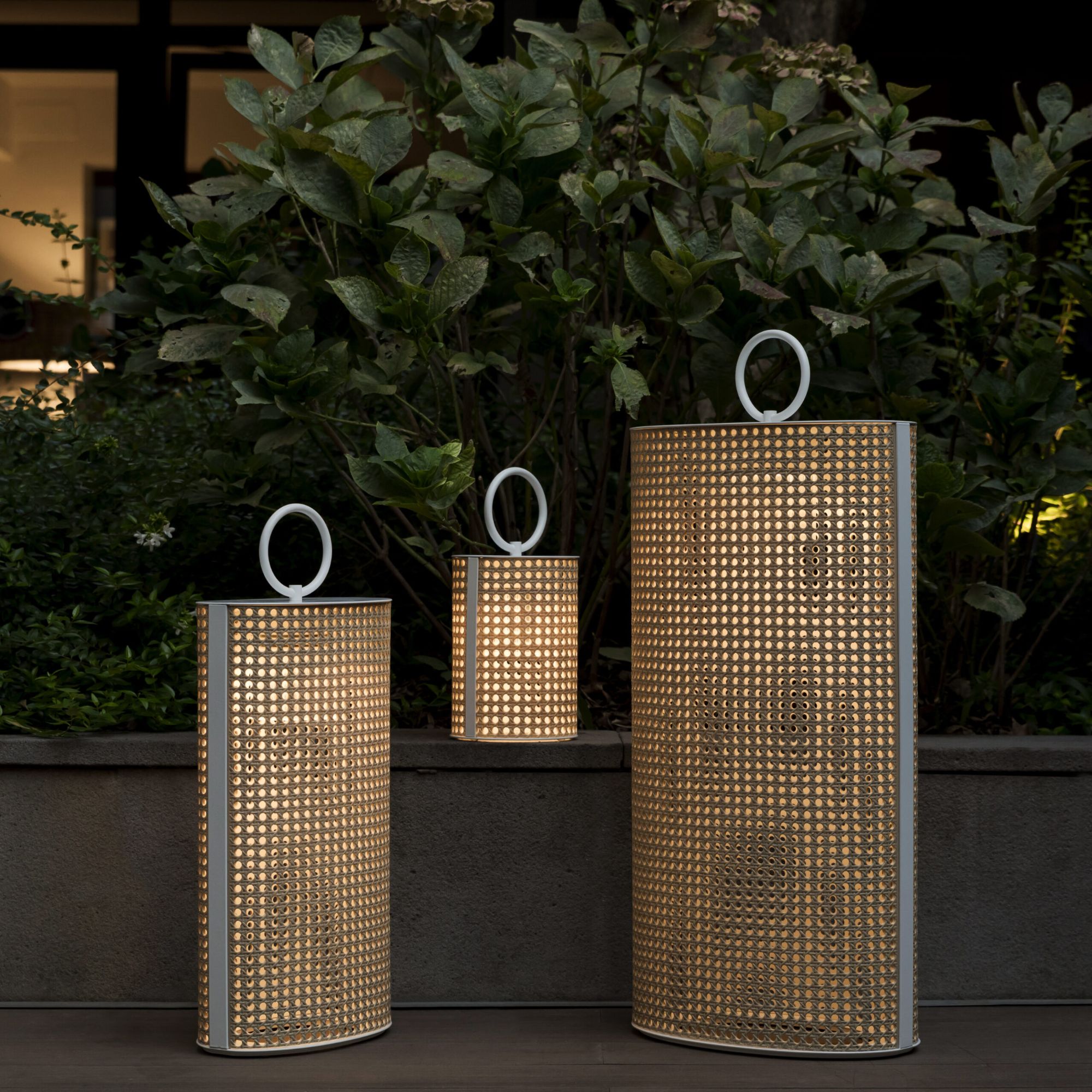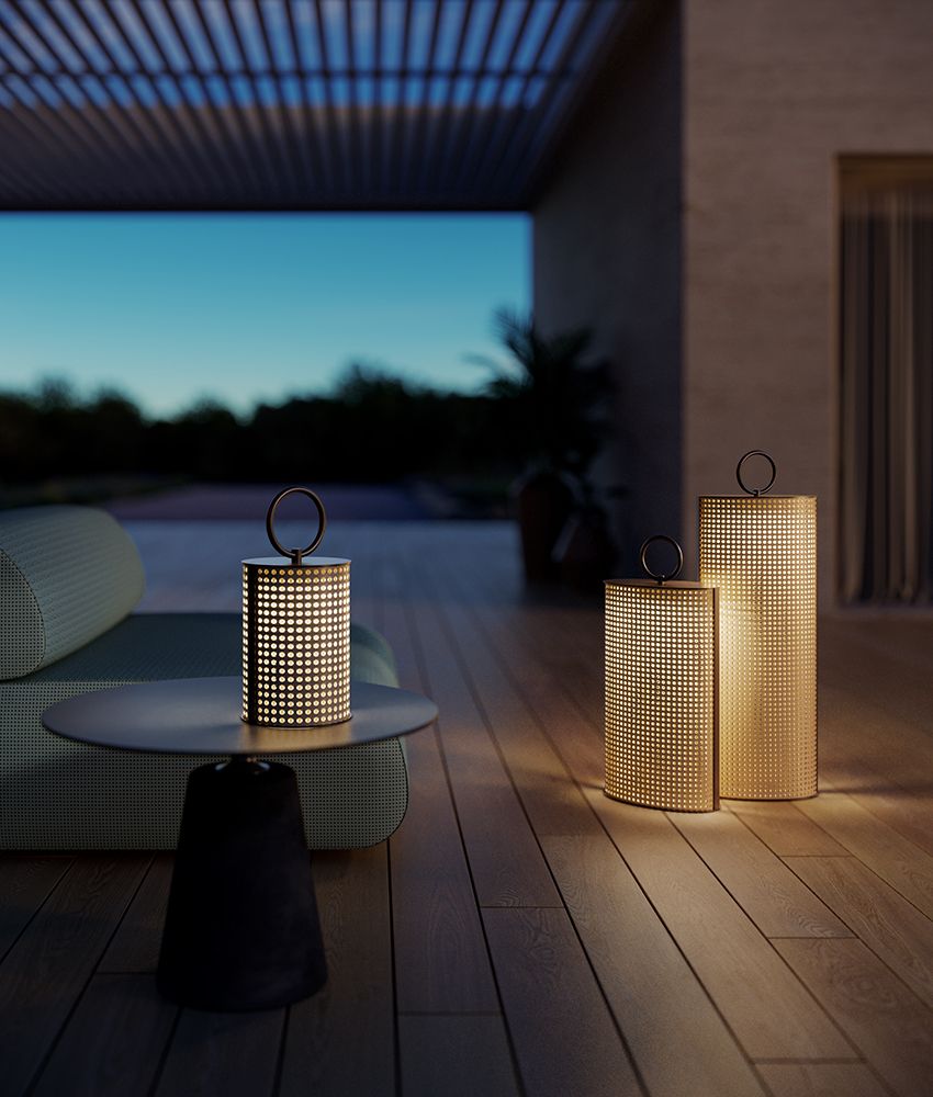 Clara was born from the concept of "bringing light wherever you go." The classic lantern has been given a modern and practical touch thanks to its rechargeable battery, which charges via USB-C and offers up to 8 hours of use. In the Small version, the lantern's battery compartment, once removed, can also be used as a hanging lamp. In the Medium and Large versions, the light source is removed with a handle and used as a torch. Thanks to its hybrid nature—a blend of indoor and outdoor, retro and modern—the Clara line offers versatility, dynamism, and comprehensive lighting.