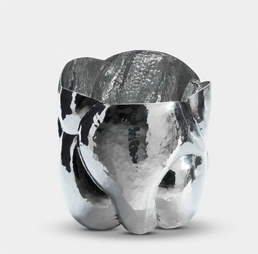 Cloud es una familia de piezas escultóricas fabricadas en aluminio pulido altamente reflectante. La colección incluye una fuente, un cuenco, un recipiente bajo y uno alto, todos elaborados a mano por hábiles artesanos en la India. Cada recipiente Cloud es impactante y hermético, por lo que puede usarse para arreglos florales y también es apto para alimentos secos.