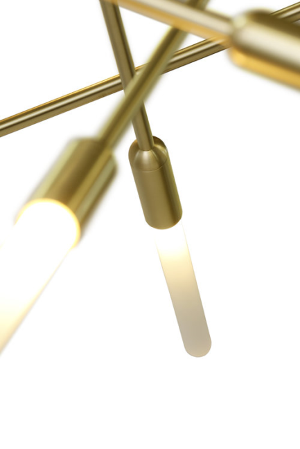 Inspirada por esa fina complejidad de las delicadas joyas, la araña Dawn es estéticamente agradable desde todos los ángulos y puntos de vista. Con una sensación orgánica y esporádica, el accesorio brilla con un acabado pulido a mano, mientras que los tubos de vidrio soplado a mano brindan una iluminación suave y perfecta. Este sistema modular permite que la lámpara se articule y se configure en innumerables posiciones, tanto en orientación horizontal como vertical que se adapten a las necesidades espaciales creando configuraciones espectaculares.
