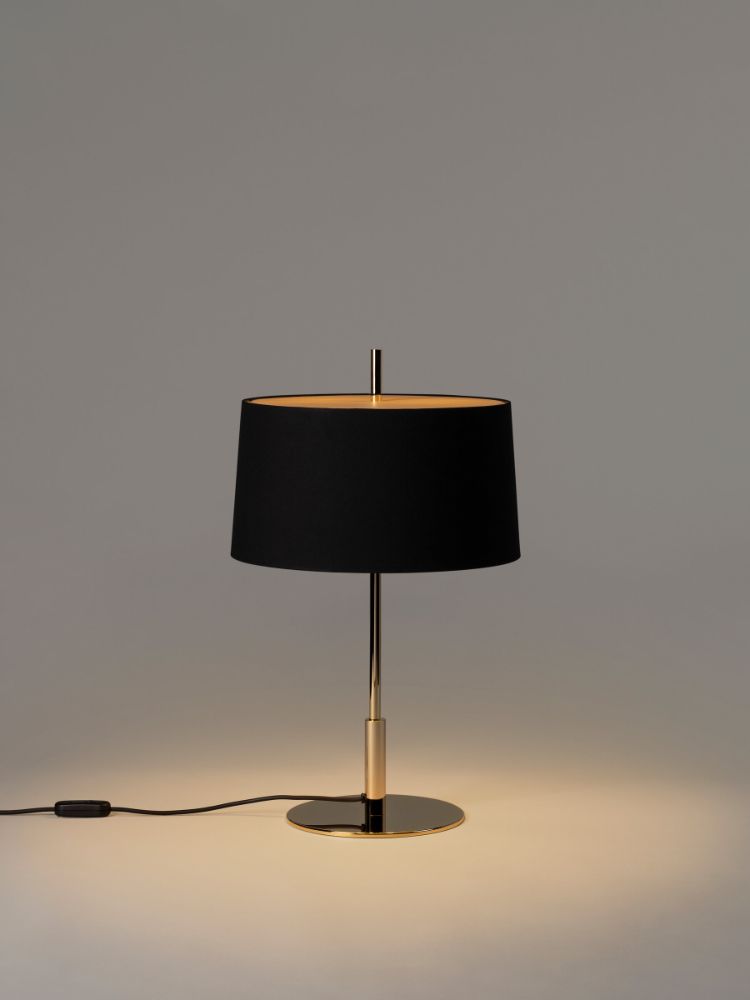 Diana Menor Lampara de Mesa - Pantalla Lino Negro con Difusor Superior Cartulina de Color Piedra/Estructura Metálica Oro Brillante
