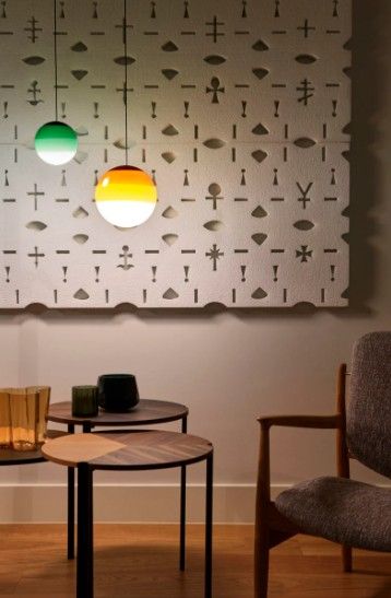 Beyond its function as a lamp, Dipping Light seeks to excite. When lit, it is fascinating: its different shades of paint filter the light, creating a magical effect in the environment. When unlit, it transforms into a colored glass sphere, an object with a profound aesthetic significance. Dipping Light was born as an experiment: dipping a lit light bulb in paint several times until it became a lamp. Thus, the various layers of paint draw concentric circles and trap the light, attenuating its intensity. The paint becomes a shade, coloring the light and giving it texture. This artisanal process makes each lamp unique and exclusive. In the pendant version, Dipping Light is stripped back to its bare essentials: color takes center stage. Therefore, when creating a composition with several, the visual effect is mesmerizing. It is available in four different sizes: 13, 20, 30, and a new diameter of 40 cm. This new, larger size, when lit, proclaims its presence: color is the message. Its volume is so solid and striking that it fills the space and bathes the room in color. The Dipping Light pendant also comes with a cluster accessory for sizes 13, 20, and 30 cm in diameter, and offers the option of connecting several pendant lamps simultaneously to a single light source. This gives you absolute freedom to create lighting with light, illuminating large spaces and creating compositions.