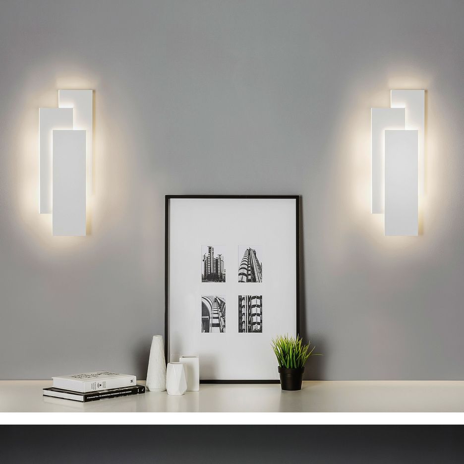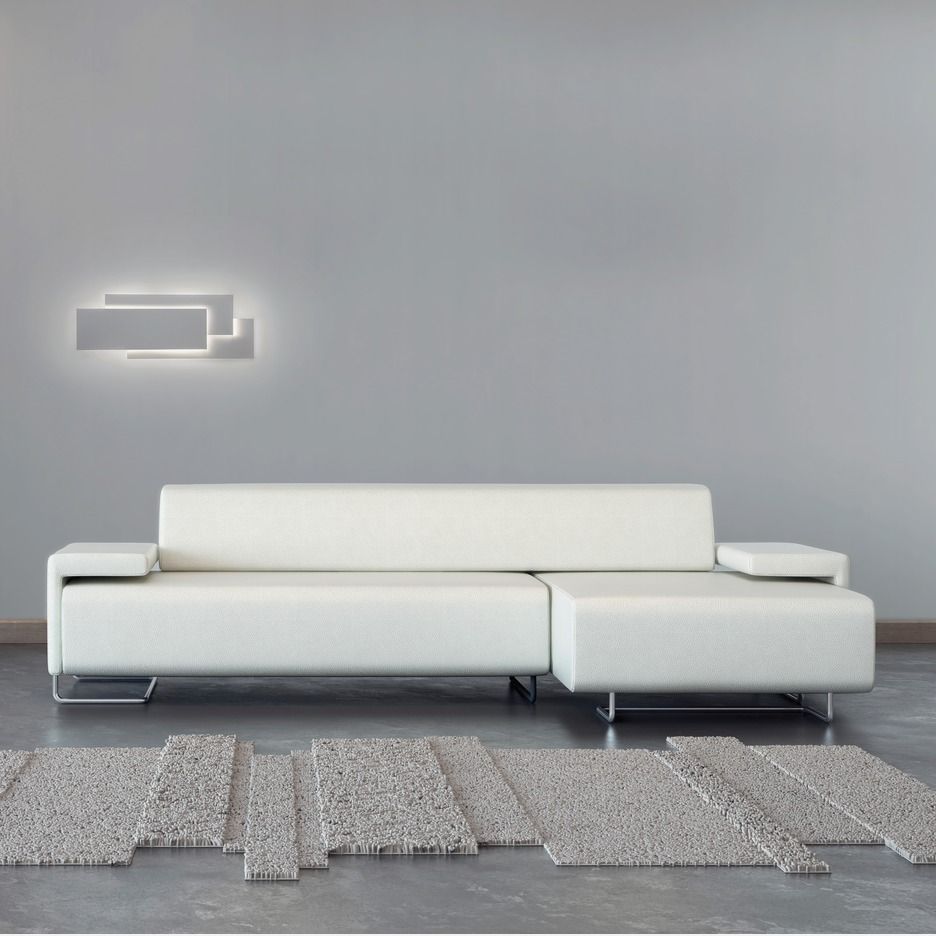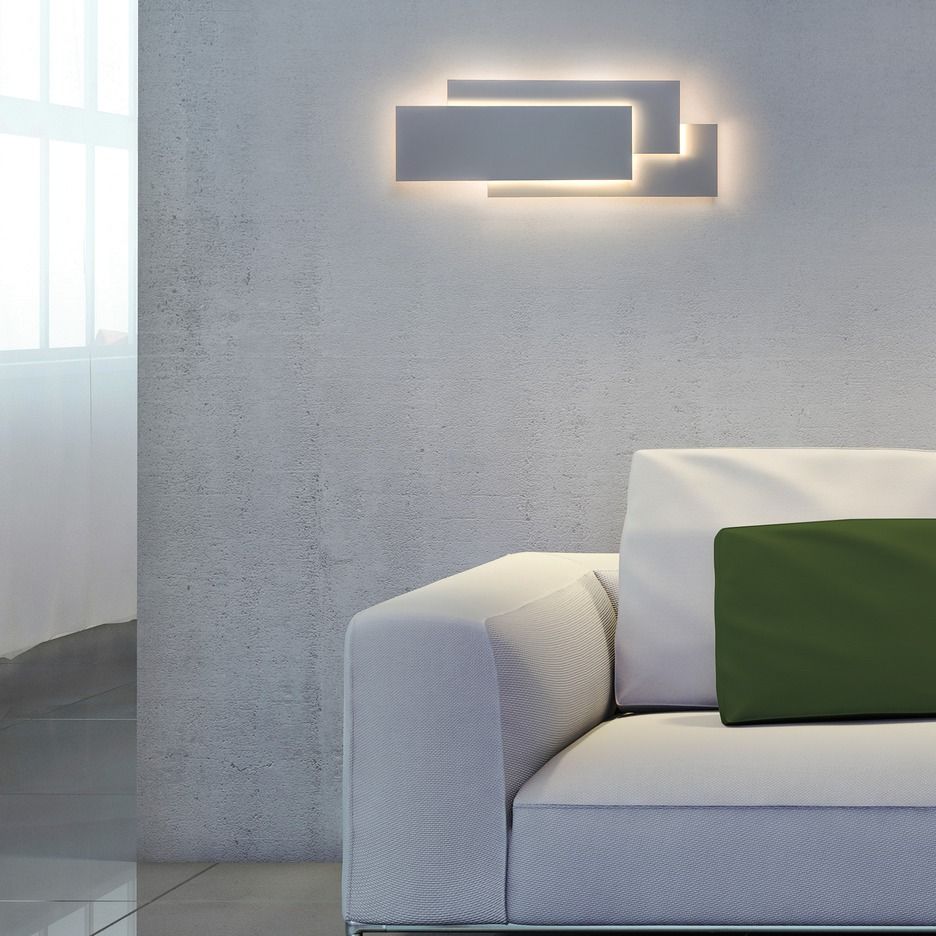 Diseño de James Bassant, para Astro Lighting, la lámpara de pared Edge LED emite la ilusión visual de rectángulos flotantes. Las tres piezas escalonadas combinan una forma escultórica con una iluminación suave para hacer un accesorio decorativo impresionante donde interactúan luces y sombras muy agradablemente. Brinda una luz suave y difusa que es ideal para usar en salas de estar, dormitorios o pasillos en interiorismos modernos.
