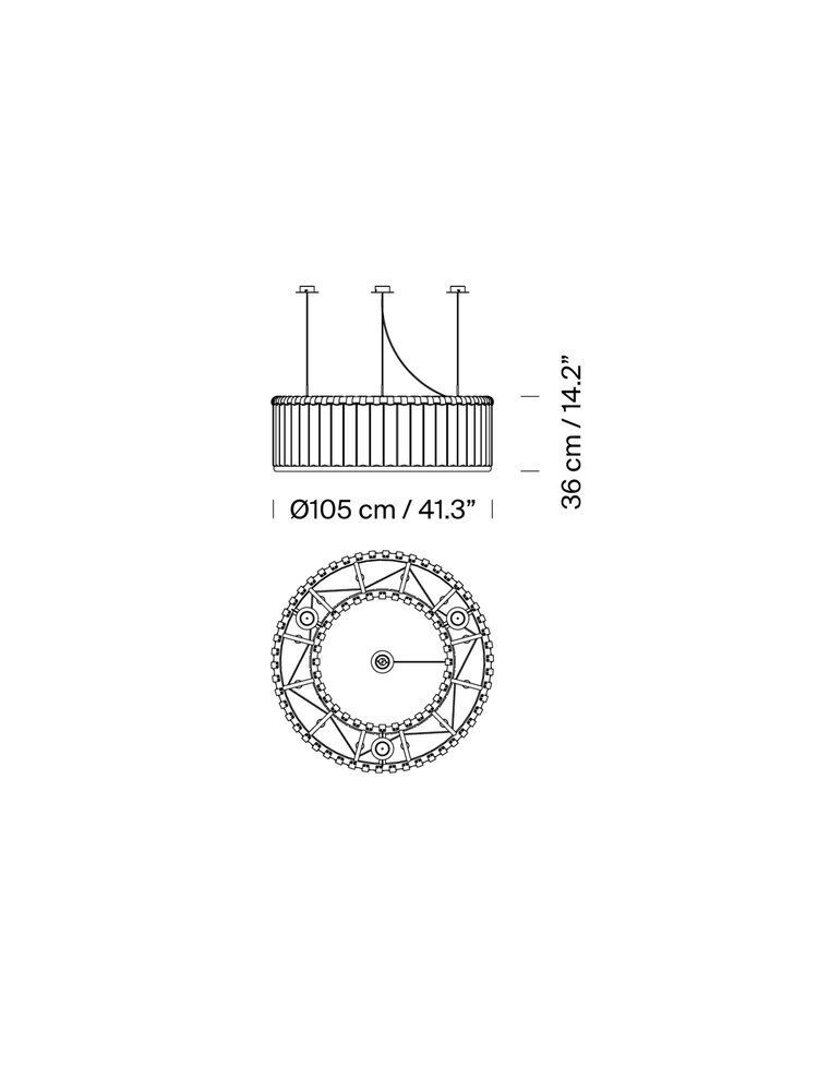 Concebida originalmente para el Estadio Olímpico de Barcelona 1992, estamos ante un recio anillo luminoso que ennoblece el espacio público cuyo antecedente conceptual se podría encontrar en los grandes candelabros de forja con repetición secuencial de luminarias, frecuentes en castillos y catedrales medievales. Una estructura tubular produce el armazón, cuyas caras visibles están compuestas por secciones de vidrio pavés