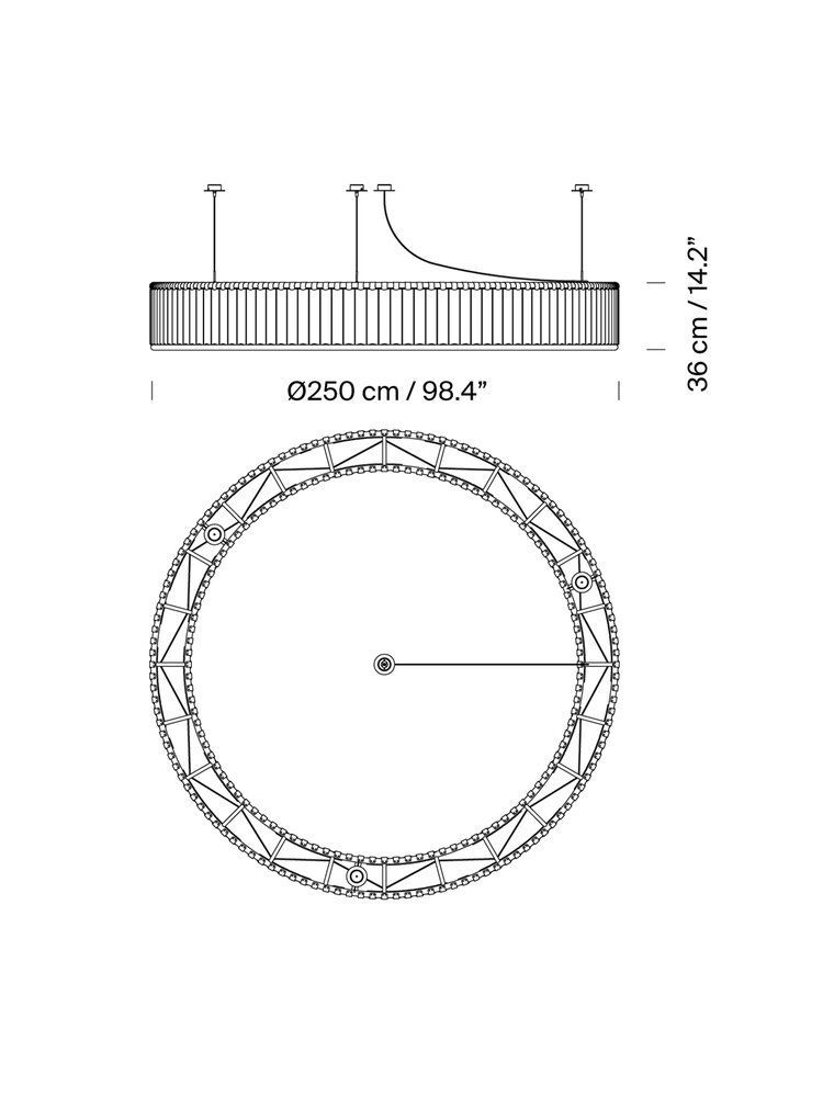 Concebida originalmente para el Estadio Olímpico de Barcelona 1992, estamos ante un recio anillo luminoso que ennoblece el espacio público cuyo antecedente conceptual se podría encontrar en los grandes candelabros de forja con repetición secuencial de luminarias, frecuentes en castillos y catedrales medievales. Una estructura tubular produce el armazón, cuyas caras visibles están compuestas por secciones de vidrio pavés