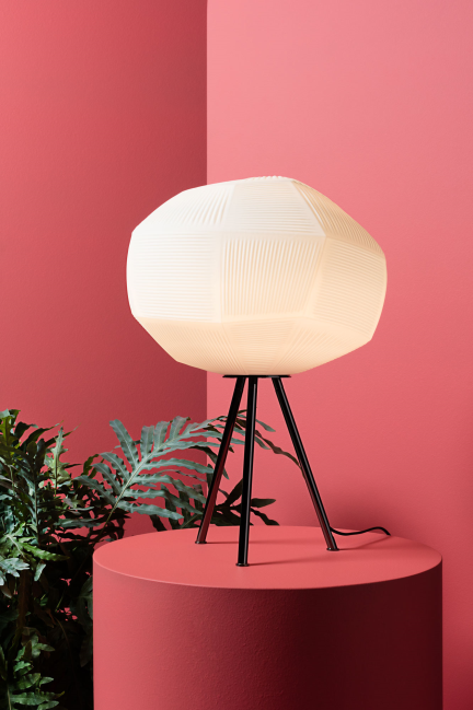 How do you deconstruct a classic? Look at Gemo... So familiar, yet so different! Its blown glass diffuser sits atop a steel frame finished in shiny black chrome.