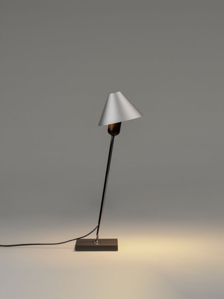 La lámpara Gira tiene la sencillez y el perfil de un clásico. Esta lámpara sintetiza todos los elementos fundamentales, aportando capacidad de movimiento mediante la rotación de su brazo y la orientación de la pantalla. Estupenda para el trabajo, Gira se concentra en darle el protagonismo a la luz, creando espacios de iluminación de sobremesa.