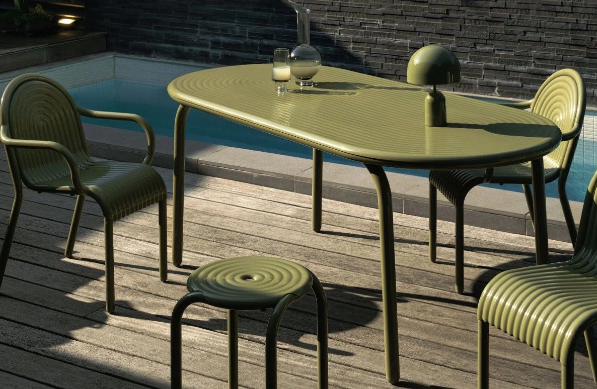 Presentamos la mesa Groove Obround, parte de la primera colección de exterior de Tom Dixon. La mesa Groove Obround presenta un distintivo estilo art déco con relieves y está fabricada en aluminio de primera calidad. Gracias a técnicas de fabricación de vanguardia para una durabilidad superior y a un acabado de pintura en polvo de alta calidad, la mesa Groove Obround garantiza su uso en exteriores y está libre de disolventes y COV. Desarrollada tras más de una década de investigación, la colección Groove incluye sillas, taburetes y cojines de exterior, y permite apilarla y almacenarla fácilmente.