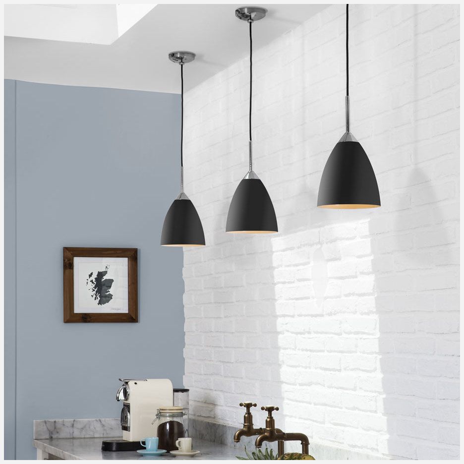 La lámpara Joel Colgante presenta una forma clásica de líneas limpias. Puedes elegir entre diversos acabados en negro, crema o cromo pulido con acentos cromados en contraste, esta luminaria es ideal y versátil para cualquier espacio con interiorismo moderno. La luz proyectada se difumina suavemente, lo que proporciona una iluminación ambiental perfecta para salas de estar vanguardistas, cocinas y oficinas. Está disponible en dos tamaños, donde varia el diámetro de su pantalla.