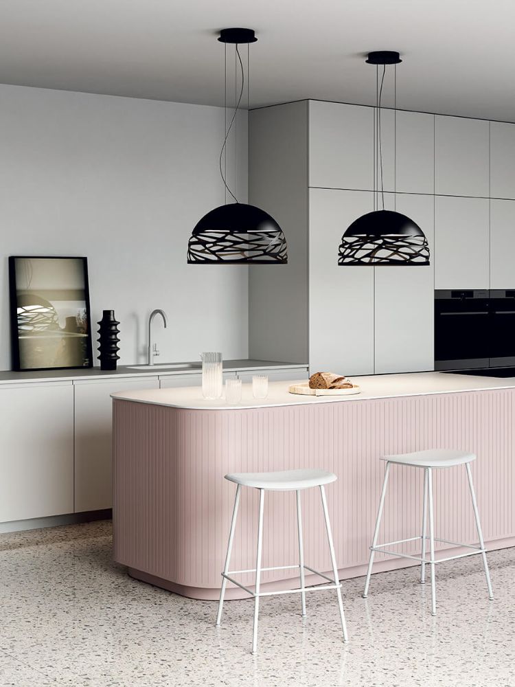 Belleza seductora con una personalidad atrevida gracias a la fuerza y cortes láser precisos, que aligeran el metal de la pantalla y crea un intrigante juego de luces y sombras. Kelly es una familia polifacética de lámparas de suspensión y apliques que destacan con elegancia en cualquier espacio habitable gracias a la variedad de disponibles formas y acabados.