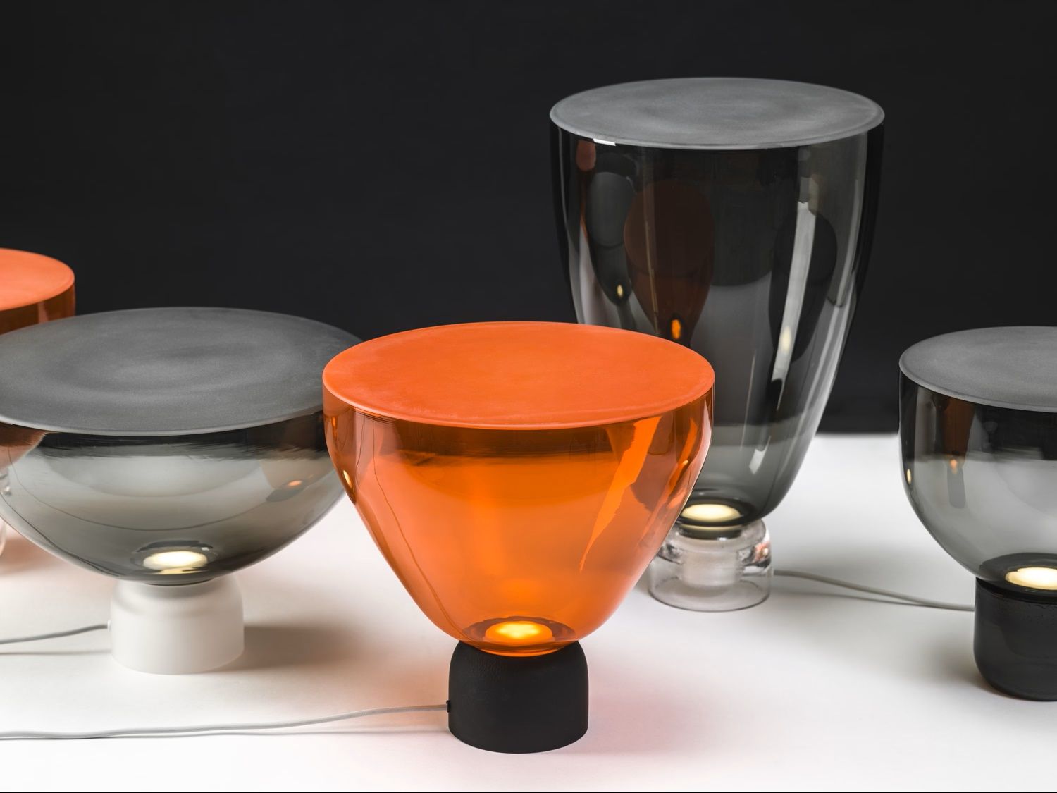 La fuente de luz LED está incrustada en la base, debajo de una cubierta de metal y vidrio triplex opalino. La superficie superior, arenada a mano, está tratada con un recubrimiento nanoespecial para evitar la acumulación de polvo y manchas. La colección comprende cuatro lámparas de mesa que proyectan una luz de carácter íntimo.