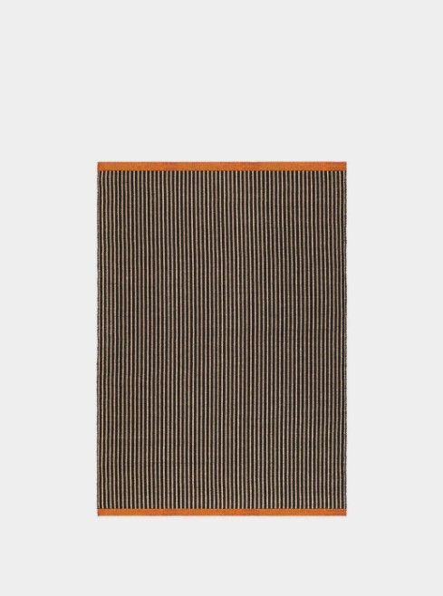 La alfombra LINE está confeccionada con un llamativo tejido plano reversible de mezcla de hilos que ofrece versatilidad y estilo. La banda tejida en color naranja proporciona un vibrante toque de color, mientras que las franjas negras le dan un aspecto dinámico e impactante. Disponible en tres opciones de tamaño, la alfombra LINE es adecuada para una variedad de espacios, ya sea para realzar un área pequeña o para causar impacto en una habitación más amplia.