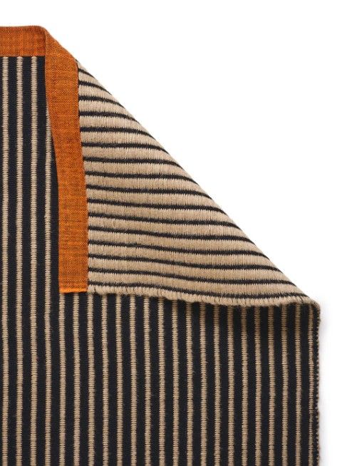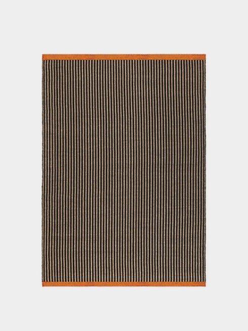 La alfombra LINE está confeccionada con un llamativo tejido plano reversible de mezcla de hilos que ofrece versatilidad y estilo. La banda tejida en color naranja proporciona un vibrante toque de color, mientras que las franjas negras le dan un aspecto dinámico e impactante. Disponible en tres opciones de tamaño, la alfombra LINE es adecuada para una variedad de espacios, ya sea para realzar un área pequeña o para causar impacto en una habitación más amplia.