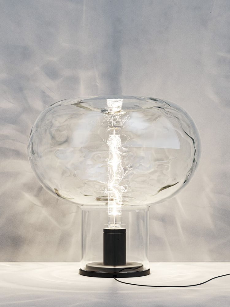 Magic Mushroom evoca lámparas de vidrio soplado con sabor retro, reinterpretando su superficie. Su superficie encuentra una interpretación contemporánea a través del efecto óptico psicodélico creado por su difusor. El efecto transparente del difusor se consigue con un cristal de superficie irregular que, gracias a su aspecto líquido, crea la ilusión de reflejo de agua en la pared a través de la proyección de la luz filtrada por el cristal.