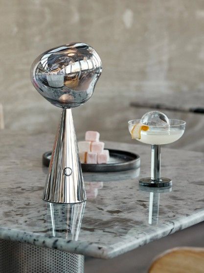 Melt Portable LED expands Tom Dixon's renowned collection, offering the same mesmerizing hot-blown glass effect in a portable design. Melt evokes molten glass, the interior of a melting glacier, or images from deep space. Melt Portable LED is available in a wide range of finishes and offers up to 10 hours of battery life.