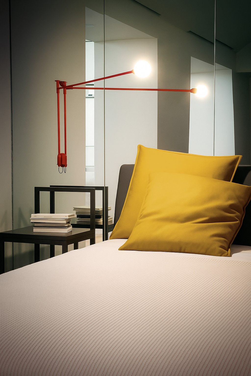 Charlotte Perriand se inspiró en el auge de los veleros cuando en 1938 concibió la Potence Pivotante. Diseñada como una lámpara giratoria altamente accesible, realizada con dos secciones tubulares negras ensambladas en forma de ‘L’ invertida para conducir el cable eléctrico desde el interruptor hasta el foco. El brazo de acero fijado a la pared gira sobre el eje horizontal, describiendo un ángulo de casi 180°.