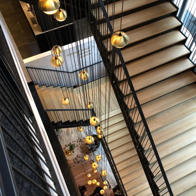 Colección de lámparas metálicas neo-vintage con difusor de doble cara en vidrio de borosilicato. Las cúpulas metálicas (una interna y la otra externa) tienen el lado interno con diferentes colores o acabados: se pueden pintar o terminar en latón pulido y cobre brillante, creando así diferentes combinaciones de texturas. La colección presenta lámparas colgantes, lámpara de pie, lámpara de mesa, pared y techo.