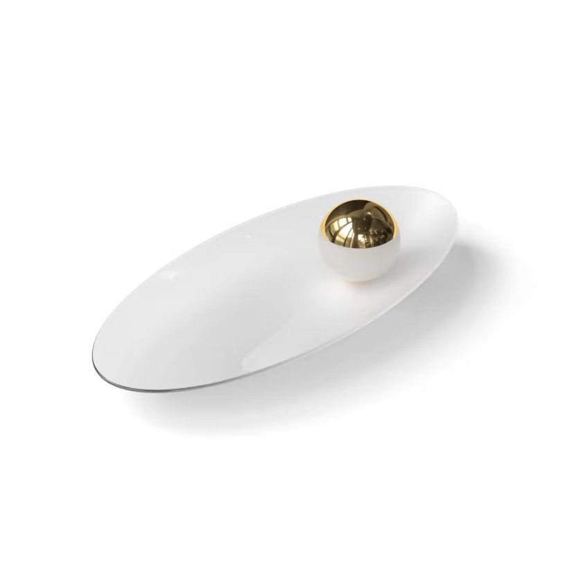 Inspirada en las preciosas perlas ocultas dentro de una ostra, esta línea de productos presenta una delicada concha de cristal que envuelve una luminosa perla de vidrio. Su impactante diseño combina cristal y latón para jugar con la luz, utilizando un arenado degradado que aporta gracia y profundidad a cada pieza.
