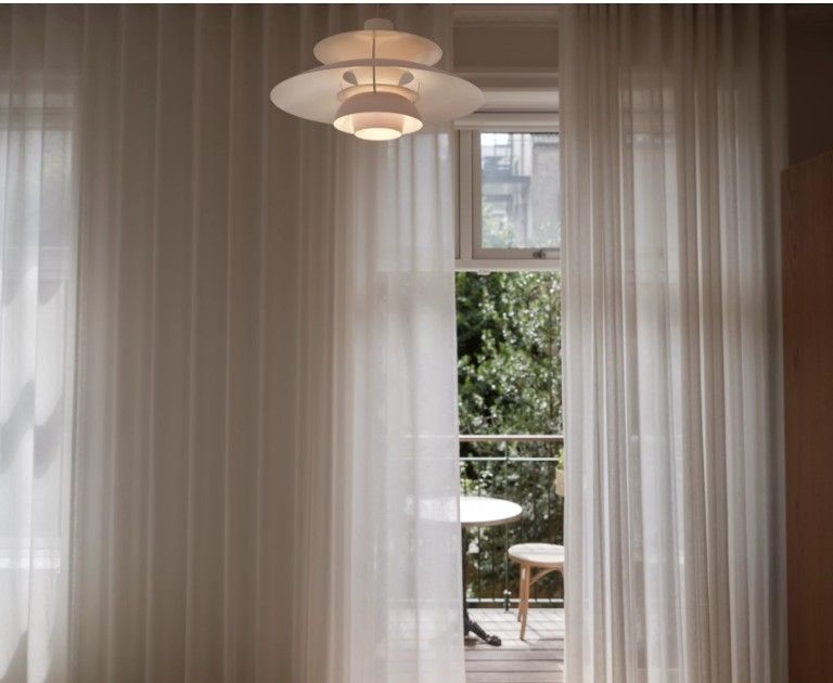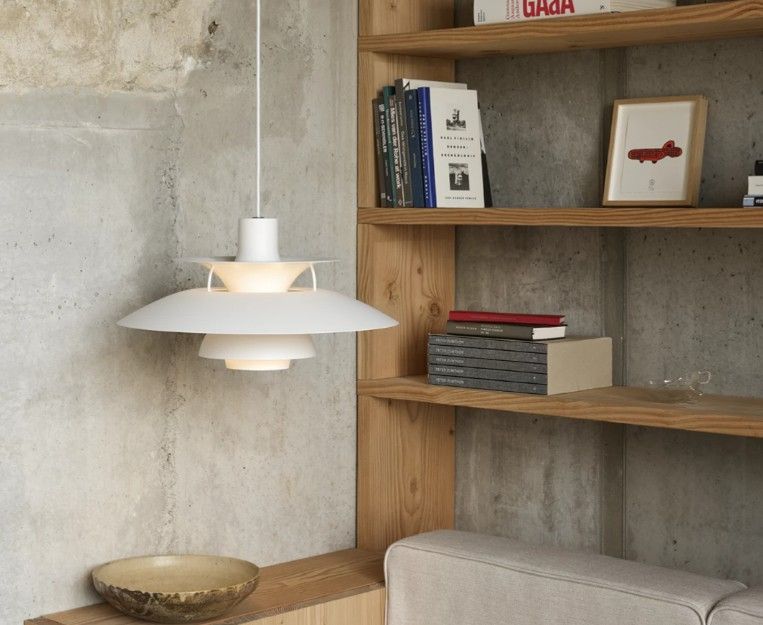 Poul Henningsen desarrolló la PH 5 en 1958 en respuesta a los constantes cambios en la forma y el tamaño de las bombillas incandescentes, creando una lámpara que podía usarse con cualquier fuente de luz. El diseño icónico se basa en los mismos principios que el sistema de tres pantallas de Henningsen. lo que garantiza que la luz sea suave, agradable y completamente antideslumbrante, convirtiéndola en la lámpara de mesa perfecta para el comedor. Originalmente, la PH 5 estaba equipada con pantallas rojas y azules para mejorar el color de la luz, sin embargo, estas se han eliminado en Los diseños posteriores, como fuentes de luz modernas, reproducen la luz del día de manera mucho más efectiva que en 1958. Disponible en diferentes variaciones de color, el PH 5 es un colgante muy querido y conocido que se encuentra en muchos hogares de todo el mundo.