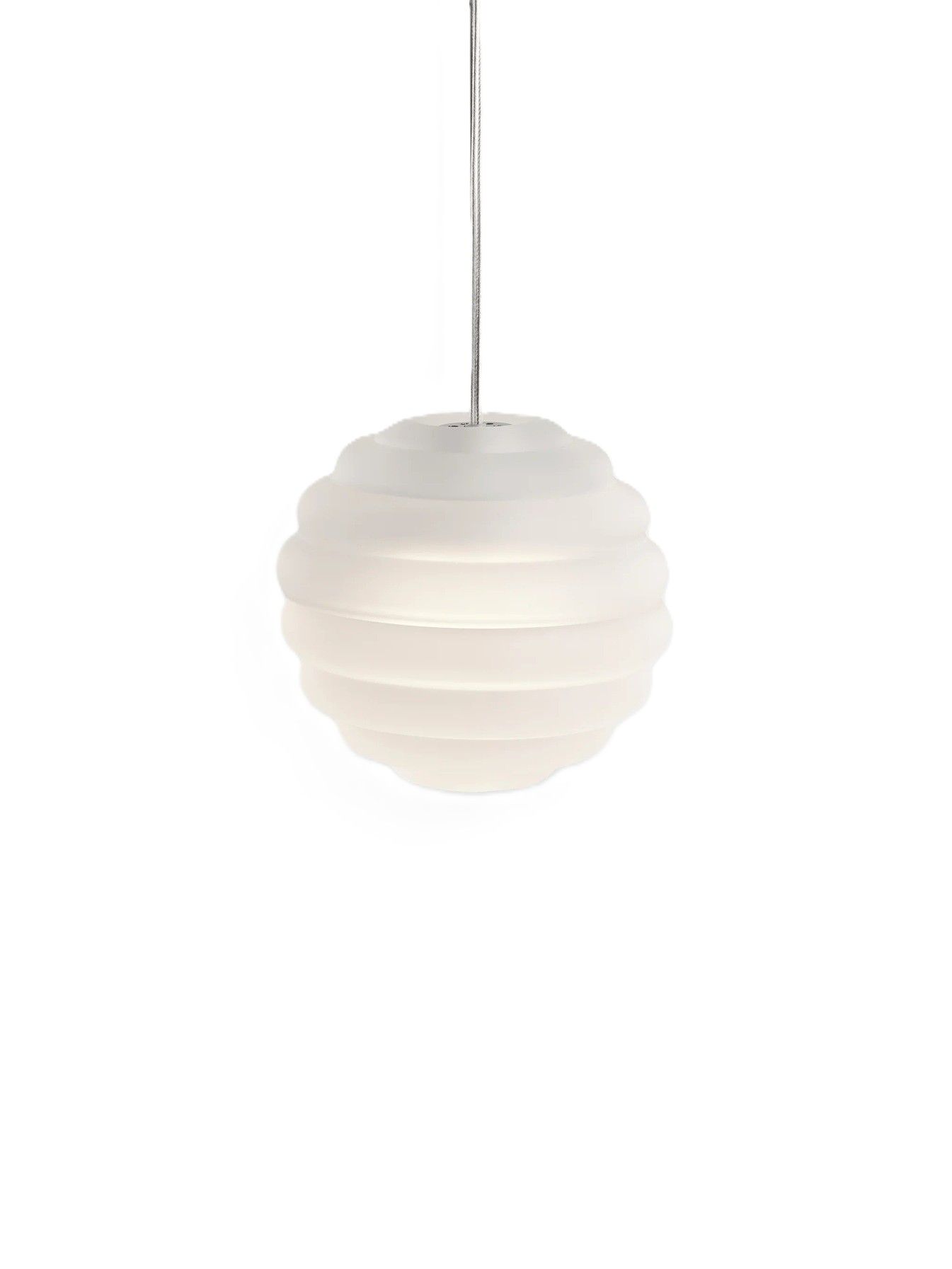La lámpara colgante esférica esmerilada PRESS Mini, diseñada por Tom Dixon en Londres, está inspirada en boyas marítimas y presenta una superficie lineal redondeada que resulta muy satisfactoria al tacto. La PRESS está hecha de vidrio grueso, con un acabado esmerilado por arenado, lo que transforma el vidrio transparente en una textura mate translúcida. Este efecto emite una luz suave, cálida y envolvente. Diseñada para colgarse en grupo o lucir igual de impactante por sí sola, esta lámpara incluye de forma estándar un anillo LED cálido de 2700K, y sus fuentes de luz reemplazables permiten extender la vida útil del producto.