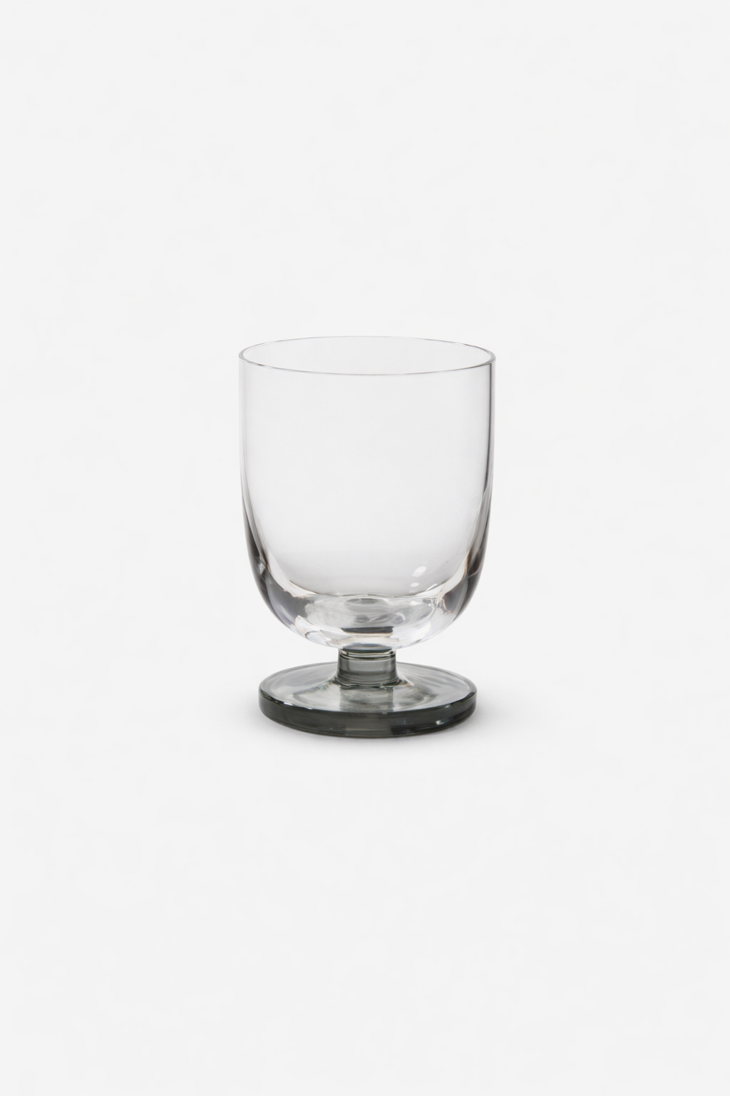The Puck collection is based on simple geometric shapes like cylinders, cones, and spheres, and is designed to be durable enough for professional cocktail use. Each piece has a thick base reminiscent of the discs used in some games. The line includes various types of glassware: for water, tasting, champagne, cocktails, balloons, coupes, highballs, and shots, as well as a decanter and an ice bucket.
