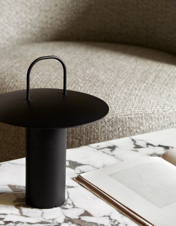 The Ray table lamp by Daniel Schofield for Audo has a distinctive silhouette inspired by vintage miners' lamps. Its streamlined design in powder-coated metal and glass features a convenient top handle, making it easy to carry the lamp wherever light is needed, from a living room shelf or dining table to a bedside table. The dimmable design, which emits a soft, muted glow from its energy-efficient LED bulb, can be adjusted to three settings. Available in two beautiful colors to complement any interior design scheme.