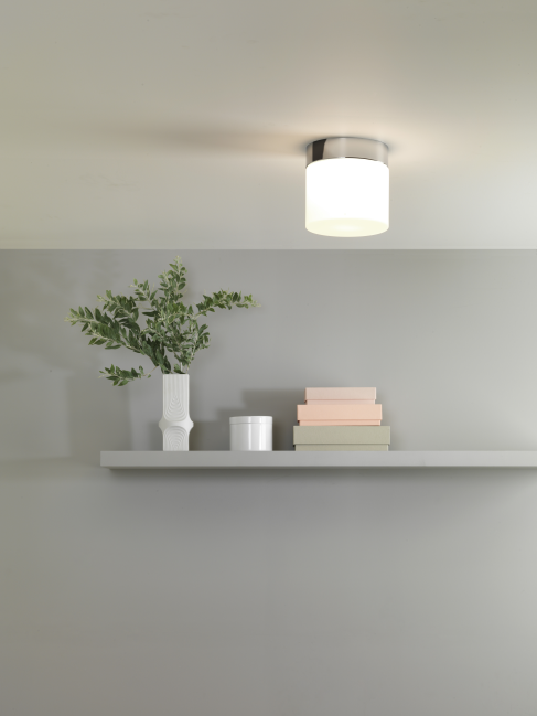 Este producto de Astro Lighting, es una lámpara de techo de la gama Sabina, que está disponible en diversos tamaños. Con una luz incandescente –no incluida– semi cálida, tiene un diseño elegante y minimalista. Un acabado de cromo pulido para la base y un difusor de vidrio ópalo blanco permiten que el accesorio brinde una amplia iluminación, pensado especialmente para las zonas húmedas (aunque también puede funcionare perfectamente en espacios comerciales) con una clasificación de protección IP44, un doble aislamiento, además de ser regulable.