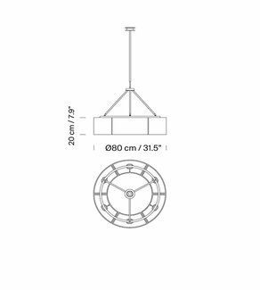 Este círculo de pantallas de doble cara produce una luz muy bien matizada que renueva la vieja tradición de luminarias medievales de hierro con múltiples fuentes. Sus pantallas de doble cara se dividen o bien en seis partes de 60º o en doce partes de 30º, según el tamaño deseado.