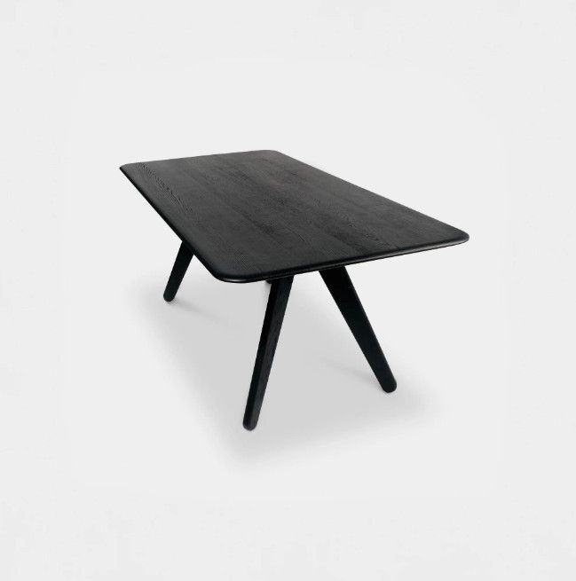 Esta mesa de losa de madera es parte de una serie de piezas robustas construidas en formas angulares de atractiva simplicidad. Hecha en Lituania con madera maciza, esta moderna mesa celebra la belleza natural del roble.