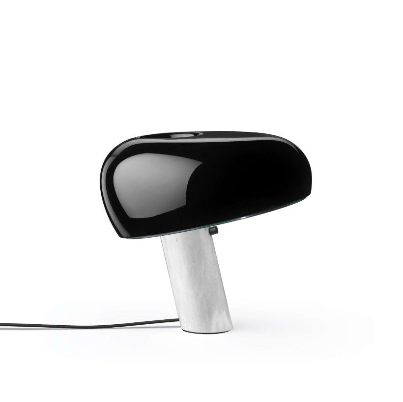 Snoopy, ces una emblemática lámpara de sobremesa que aúna funcionalidad, elegancia y un toque lúdico. Su reflector metálico esmaltado emite una luz directa y asimétrica, mientras que la base de mármol de Carrara blanco aporta solidez y sofisticación. Snoopy está diseñada para interiores secos. Su forma, inspirada en el icónico personaje de Charles M. Schulz, transmite un aire irónico y entretenido, convirtiéndola en una pieza de diseño que combina carácter artístico y practicidad contemporánea.